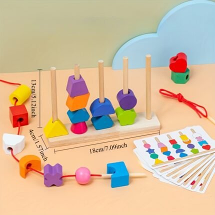 Wooden Lacing & Stacking Shapes Activity Set (3Years+) This multi-functional early learning resource encourages children to explore shapes, colours, sequencing,