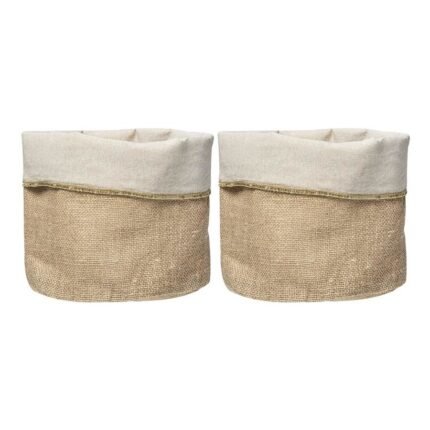 2x Ladelle Starry Gold Lurex Weave Jute Storage Basket Organiser 20.5x18x18cm