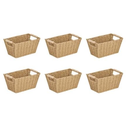 6PK Annabel Trends Papier Woven Basket with Beaded Handle – (18x28cm)