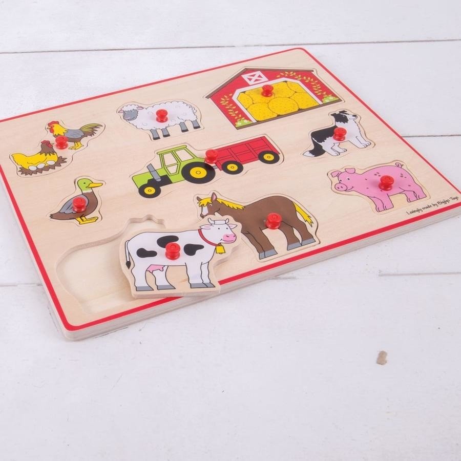 Bigjigs Toys Wooden Farm Knob Puzzle – Early Learning (18m+)