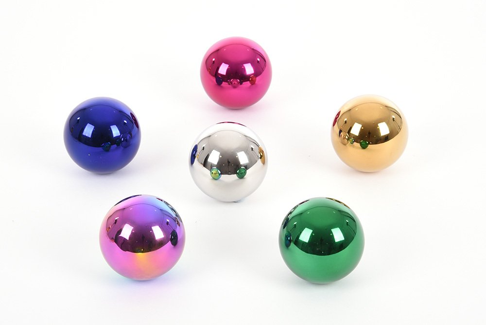 Set includes 6 colourful reflective balls (blue, green, gold, pink, silver, and colourburst)